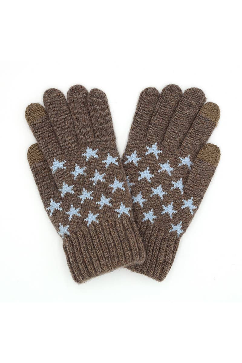 This accessory brings a unique star print smart gloves style. Indulge in the artistry of accessorizing with this unique piece.