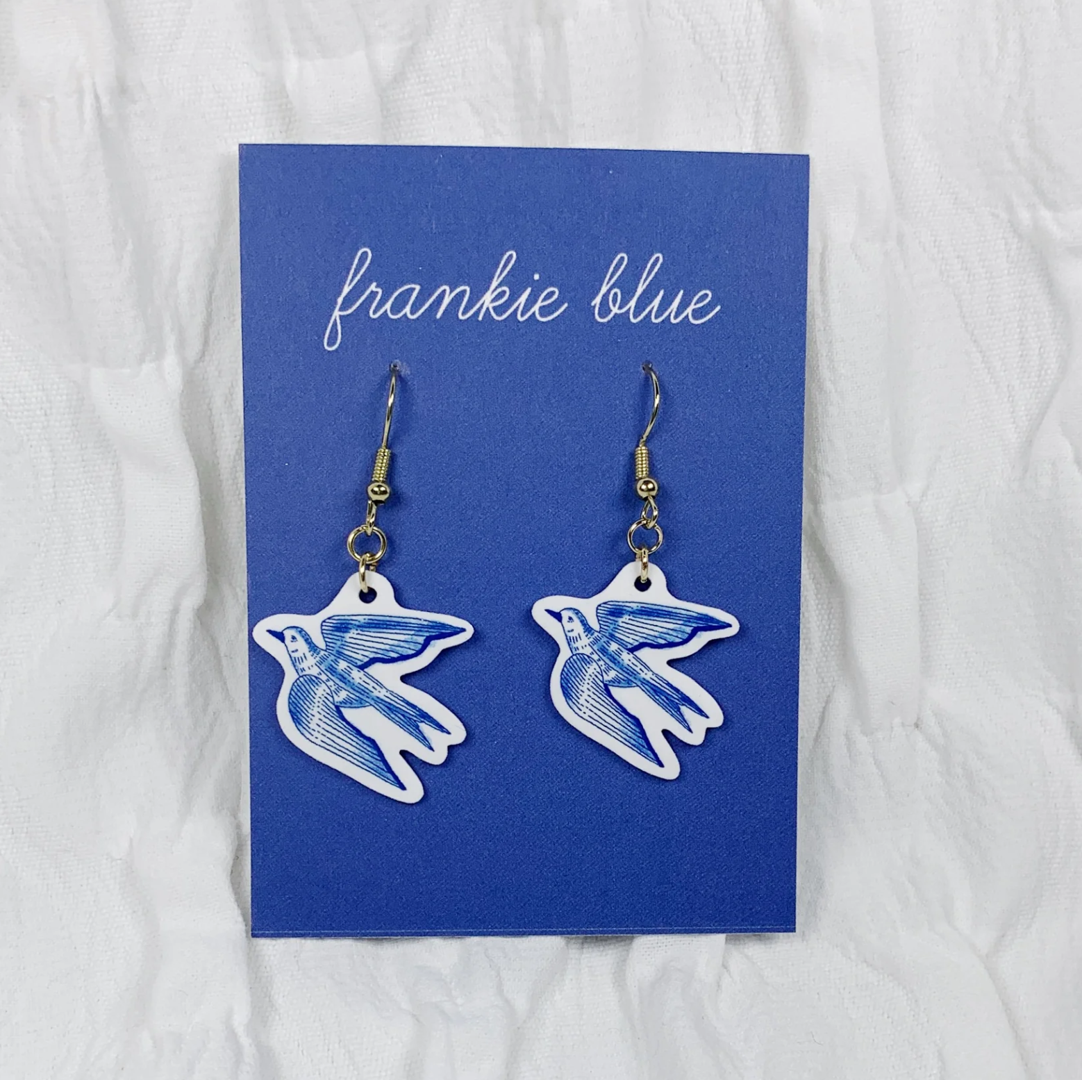 Soar with style wearing these delicate handmade swallow earrings! Featuring a graceful blue and white swallow design, these earrings blend elegance with a touch of freedom and whimsy.