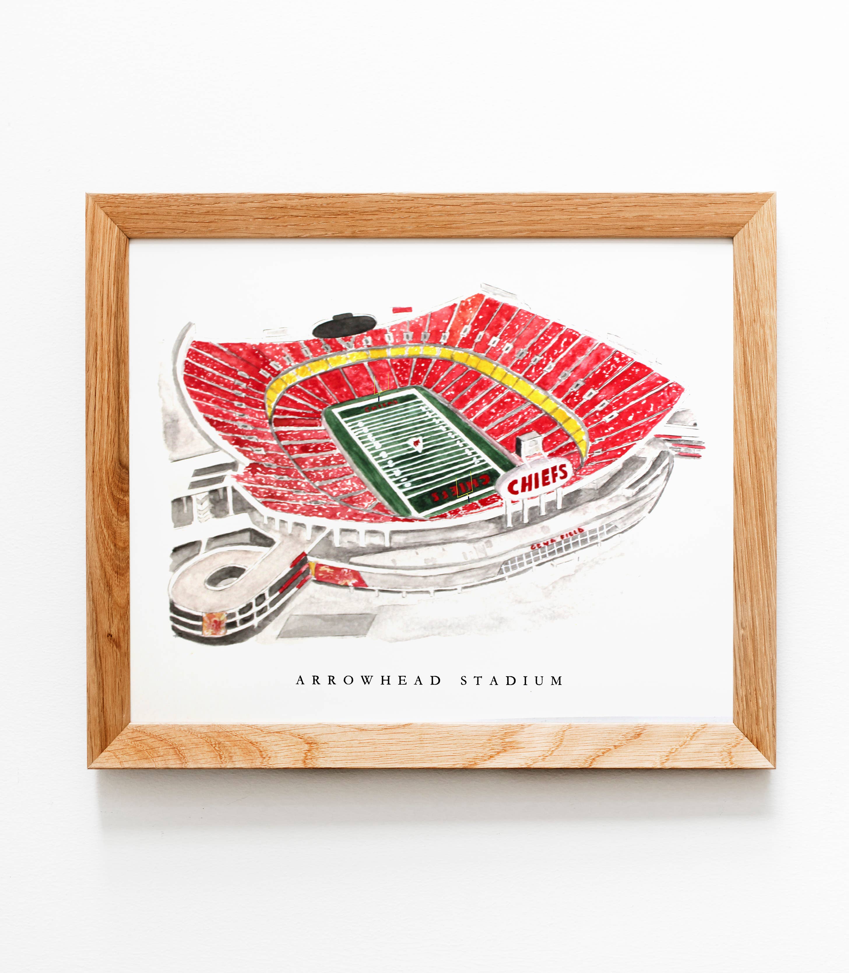 Matte print of Arrowhead Stadium watercolor painting. Poster and canvas options available.