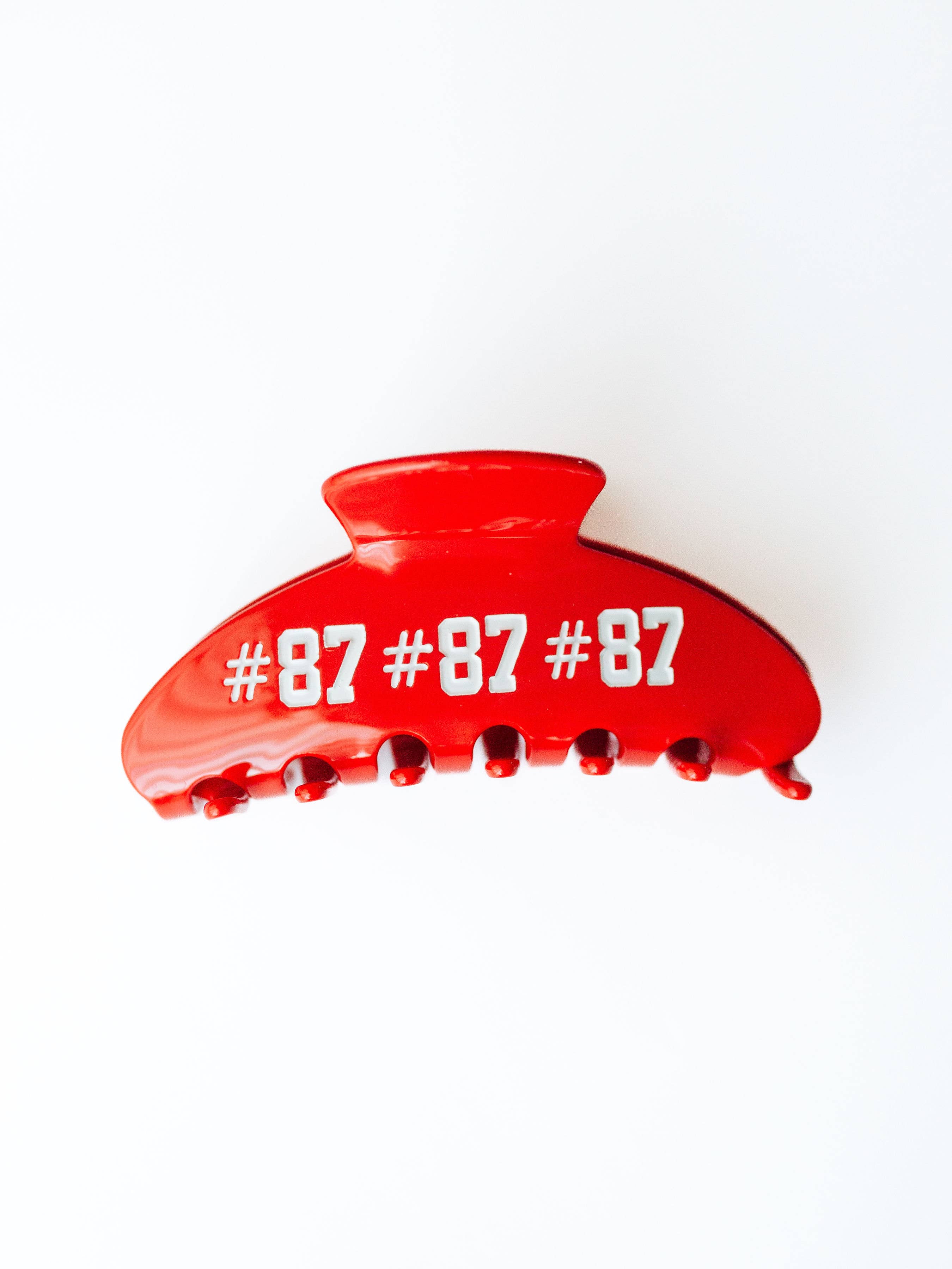 Cheer on your favorite team in style with the Kansas City Chiefs #87 Tight End Claw Clip. This EB and Co. designed hair accessory measures 3.97 inches long, perfect for securing your hair on game day or any day. As an extension of EB and Co.'s mission to inspire individuality and confidence, this claw clip embodies the spirit of the game while adding a touch of modern simplicity to your look. A must-have for any Chiefs fan, it's an accessory that truly stands out in the crowd.