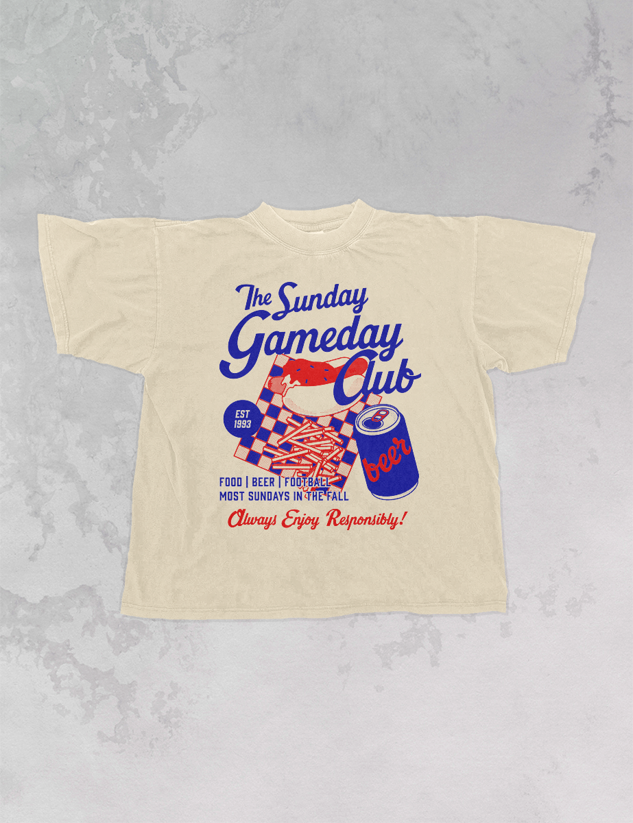 Get ready for game day in our Sunday Gameday Club oversized tshirt that is inspired by vintage 90s college sports tshirts, perfect for Game Days!