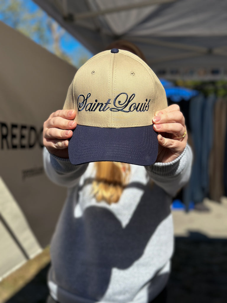 Our Clark baseball cap is embroidered with "Saint Louis".