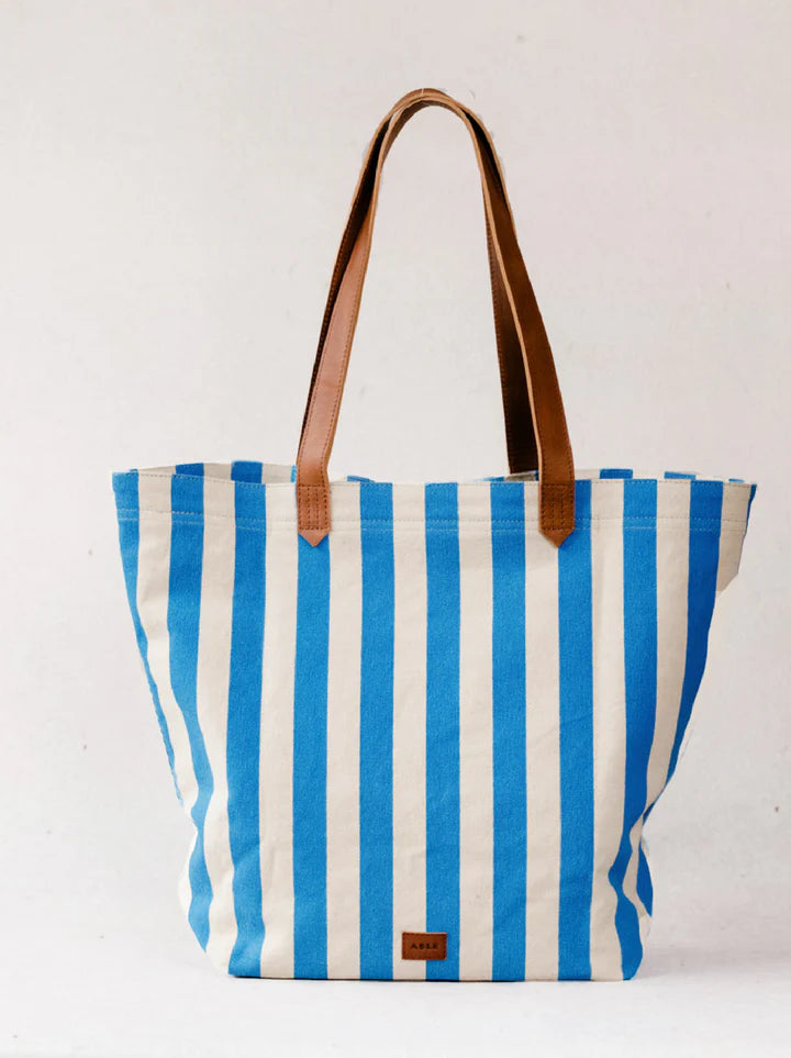 Pack your paradise in the ultimate summer essential. This cabana striped carryall tote is stylishly oversized and designed for any occasion. Featuring over the shoulder genuine leather straps for carrying comfort and an interior slit pocket for grab-and-go organization. Whether you’re bound for the beach or brunch, this iconic tote is the perfect companion.
