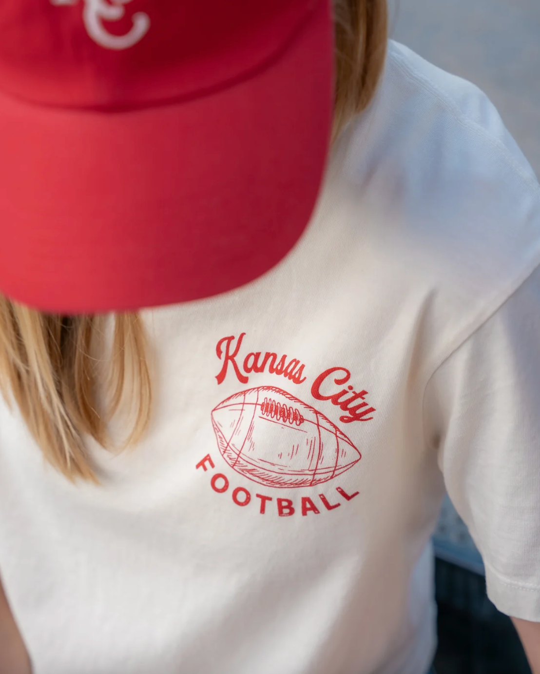 Extra soft, garment washed ivory screen printed Comfort Colors Kansas City Football tee.