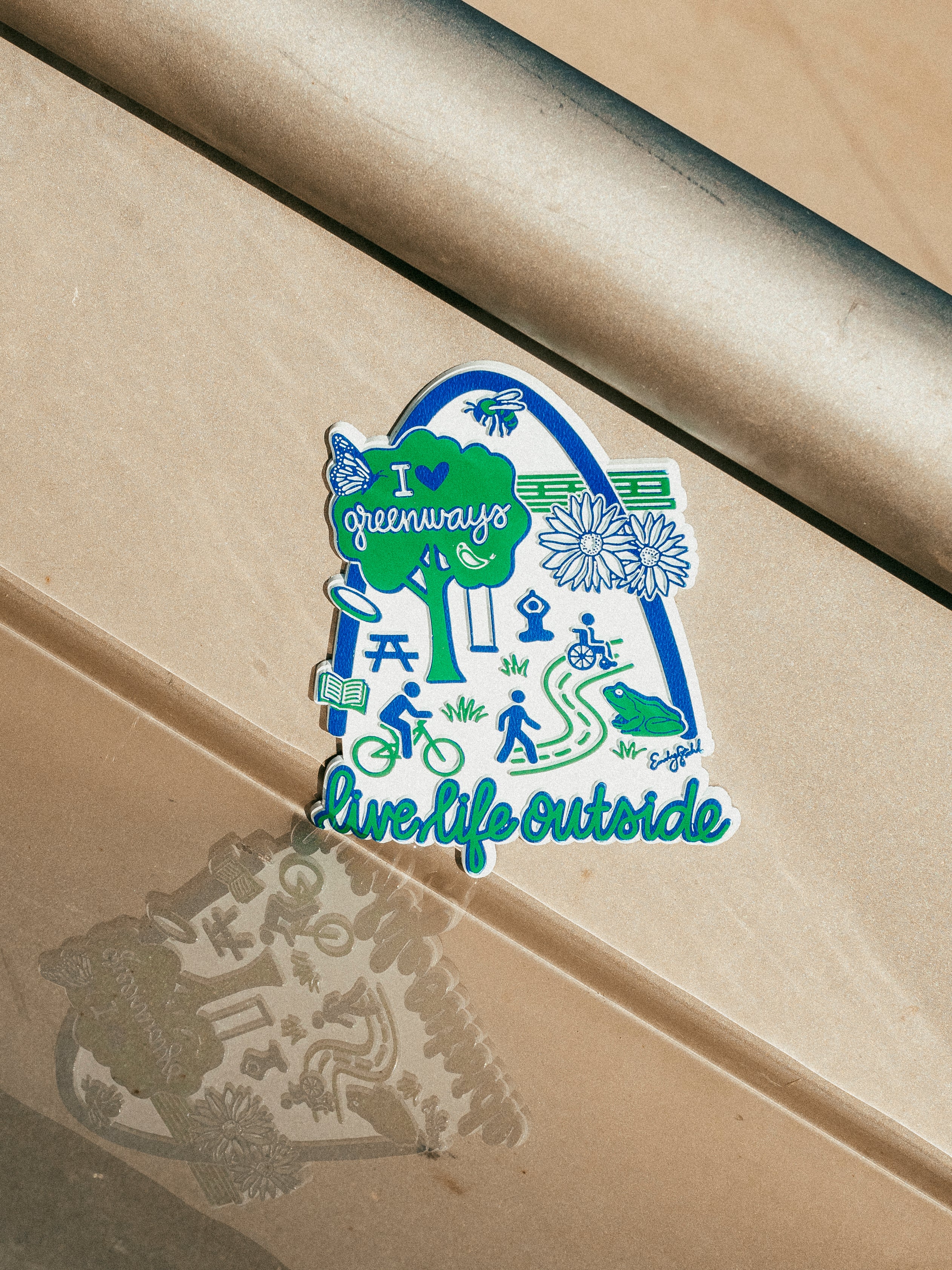 A percentage of each sale is donated to Great Rivers Greenway. Those donation allows Great Rivers Greenway to collaborate with partners and communities to build, care for and bring to life your network of greenways, creating healthy habitats and watersheds along the way.
