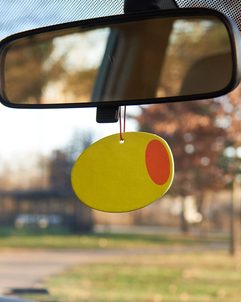 Your favorite new foodie air freshener! Hang this giant green martini olive anywhere that could use a dose of fun.