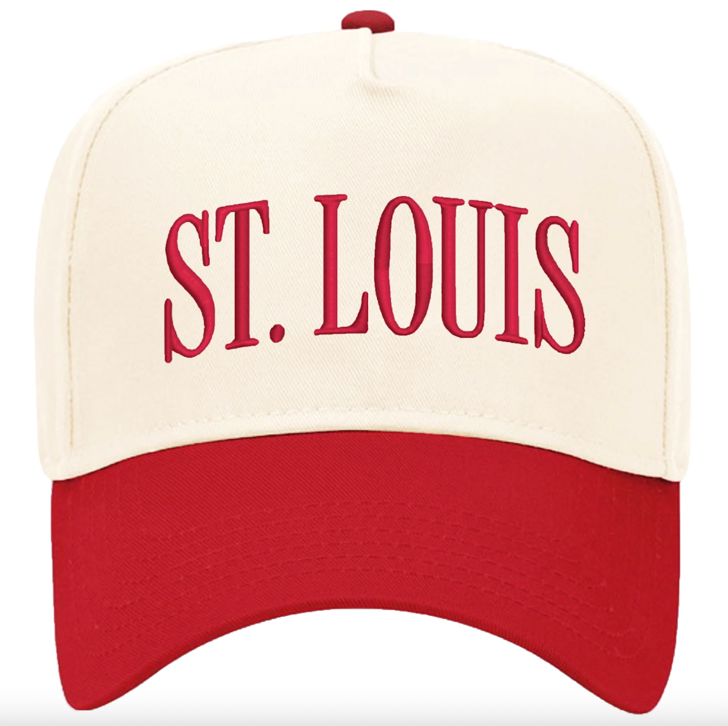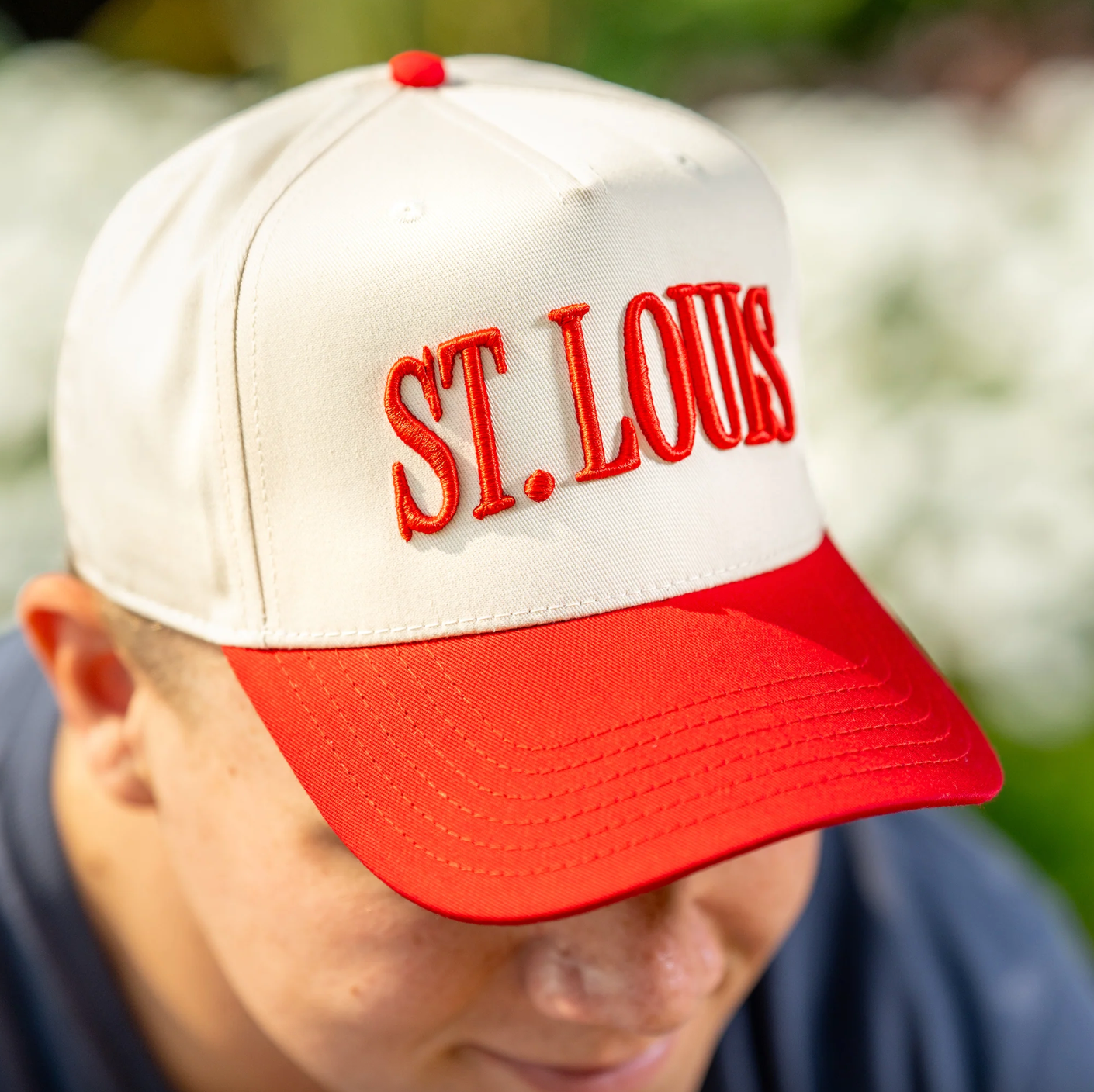 Structured, Mid Profile, Firm Front Panel, 5-panel cap with snapback complete with a puff embroidered St. Louis on the front