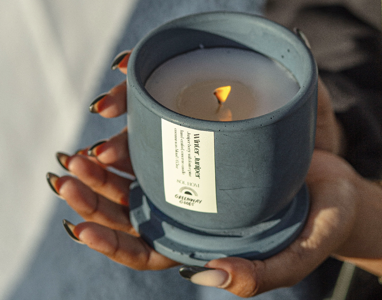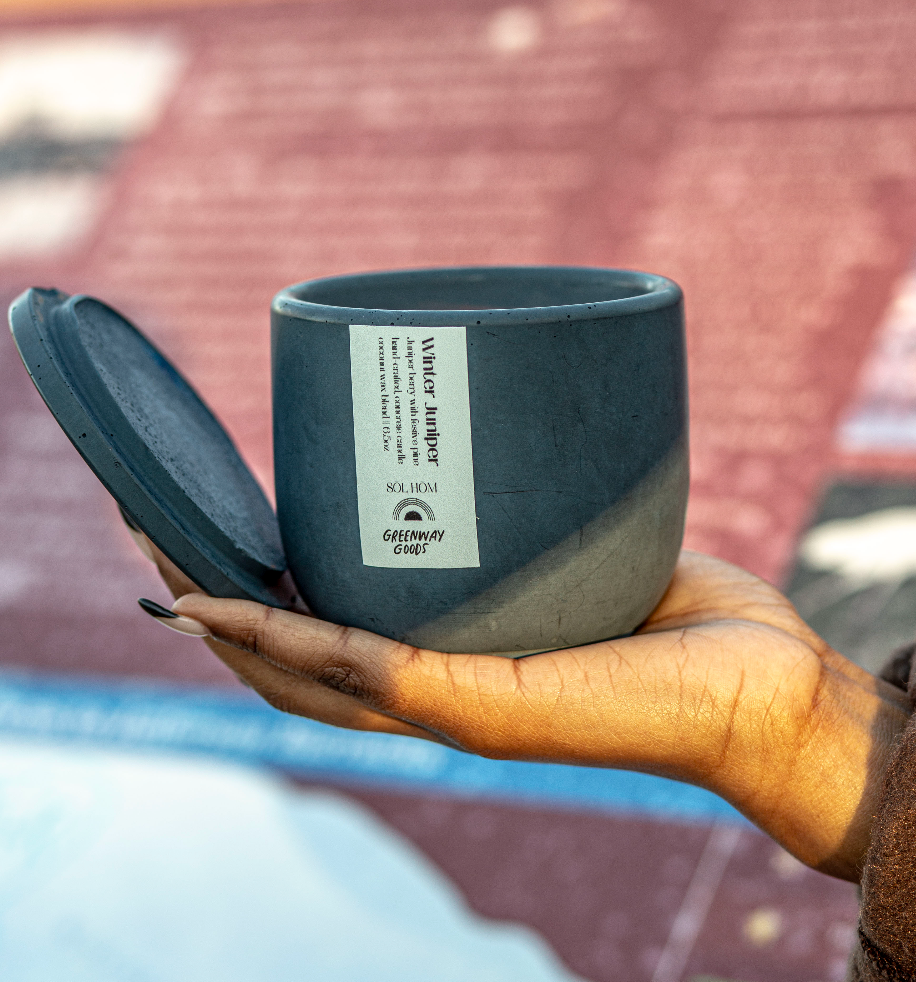 Sōl Hōm makes the concrete vessels, and hand pours the candles in St. Louis. Vessels are created to be reused.
